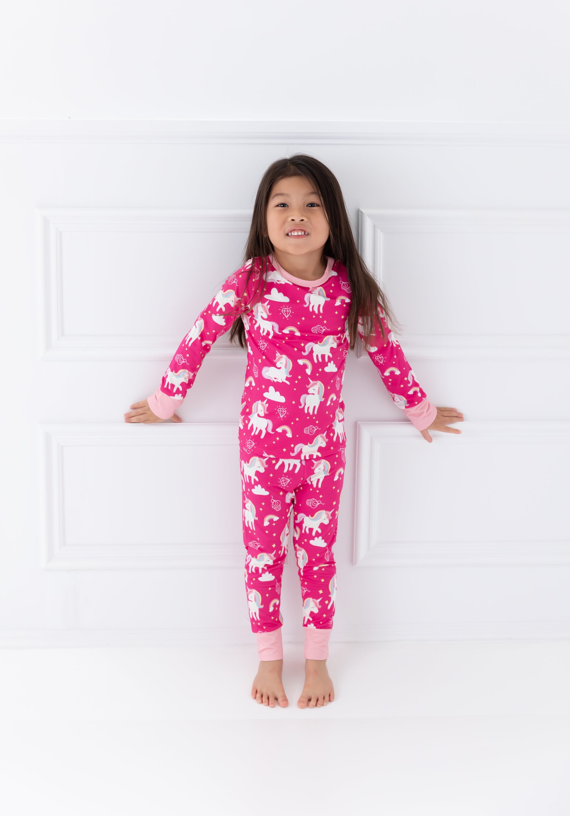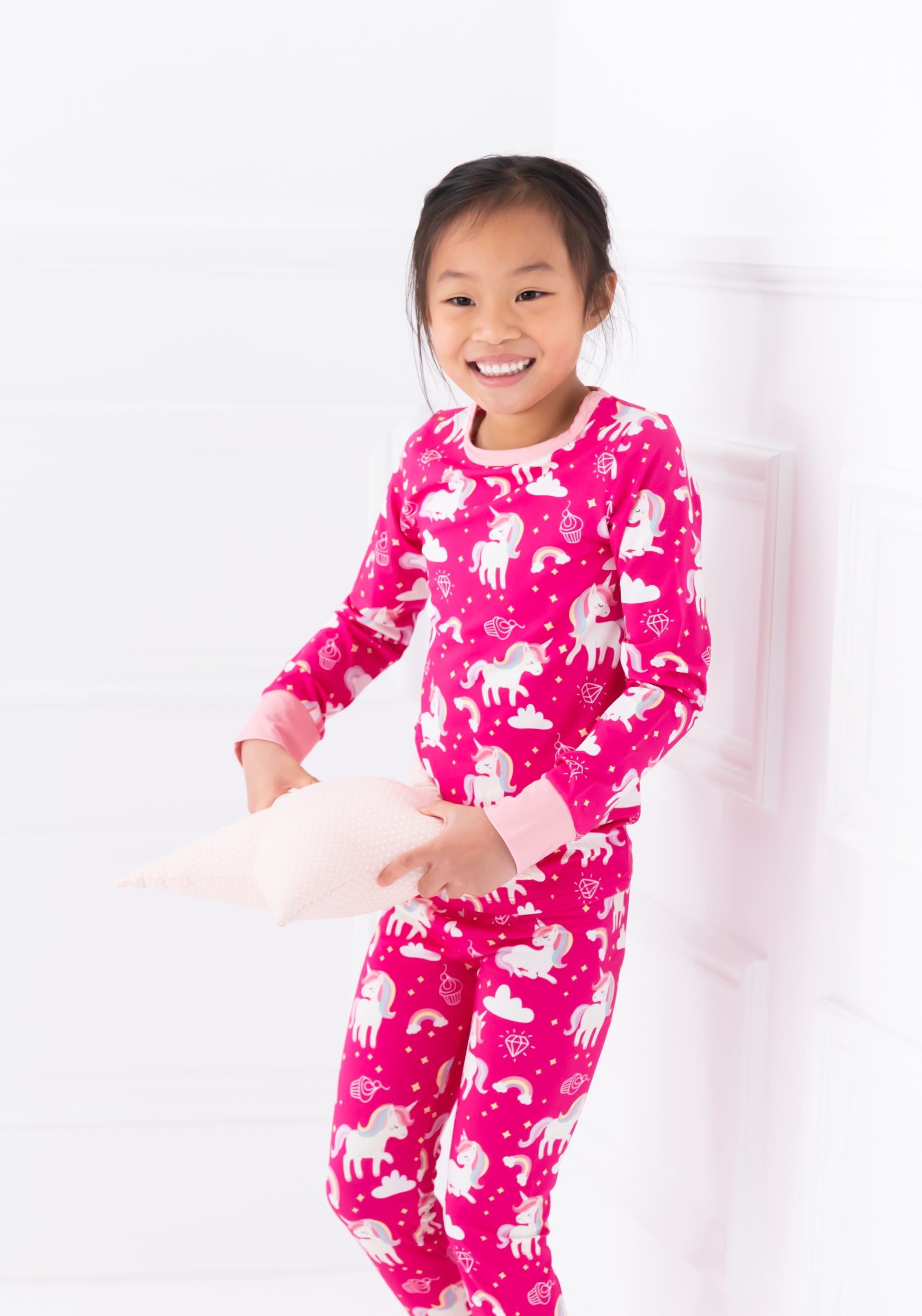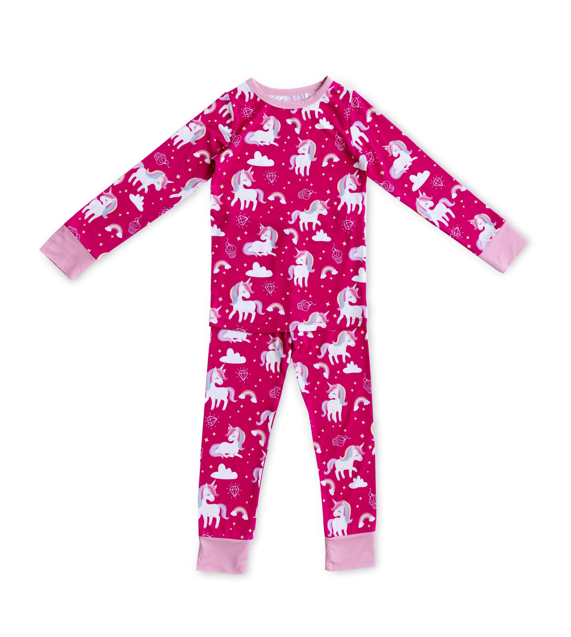 These Mythical Unicorns pajamas are out-of-this-world cozy! Not only do they feature a magical mix of rainbow hues and unicorn fluff, but they're also perfect for catching a wink of beauty sleep! Snuggle up and drift away on a mystical night of dreams!