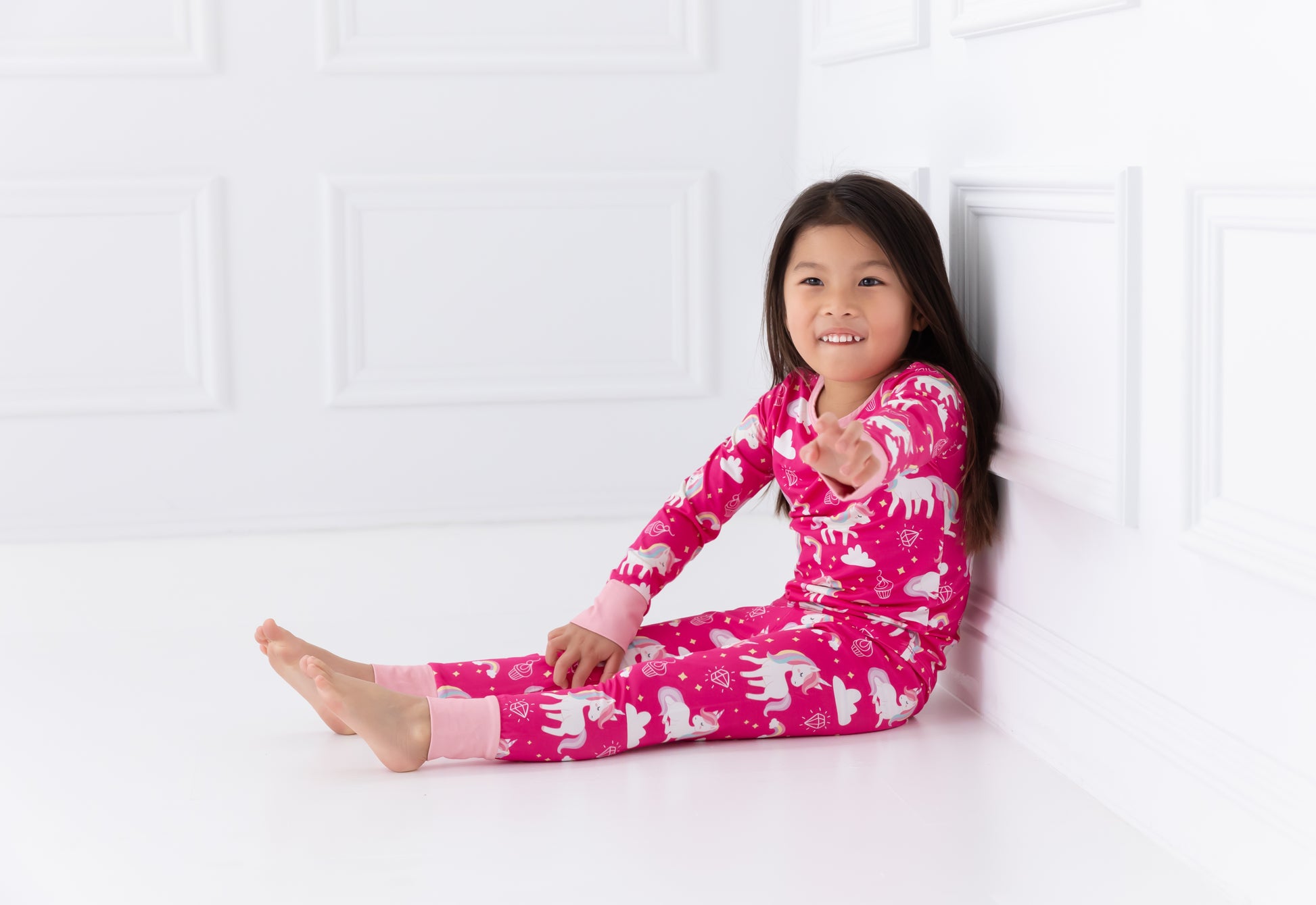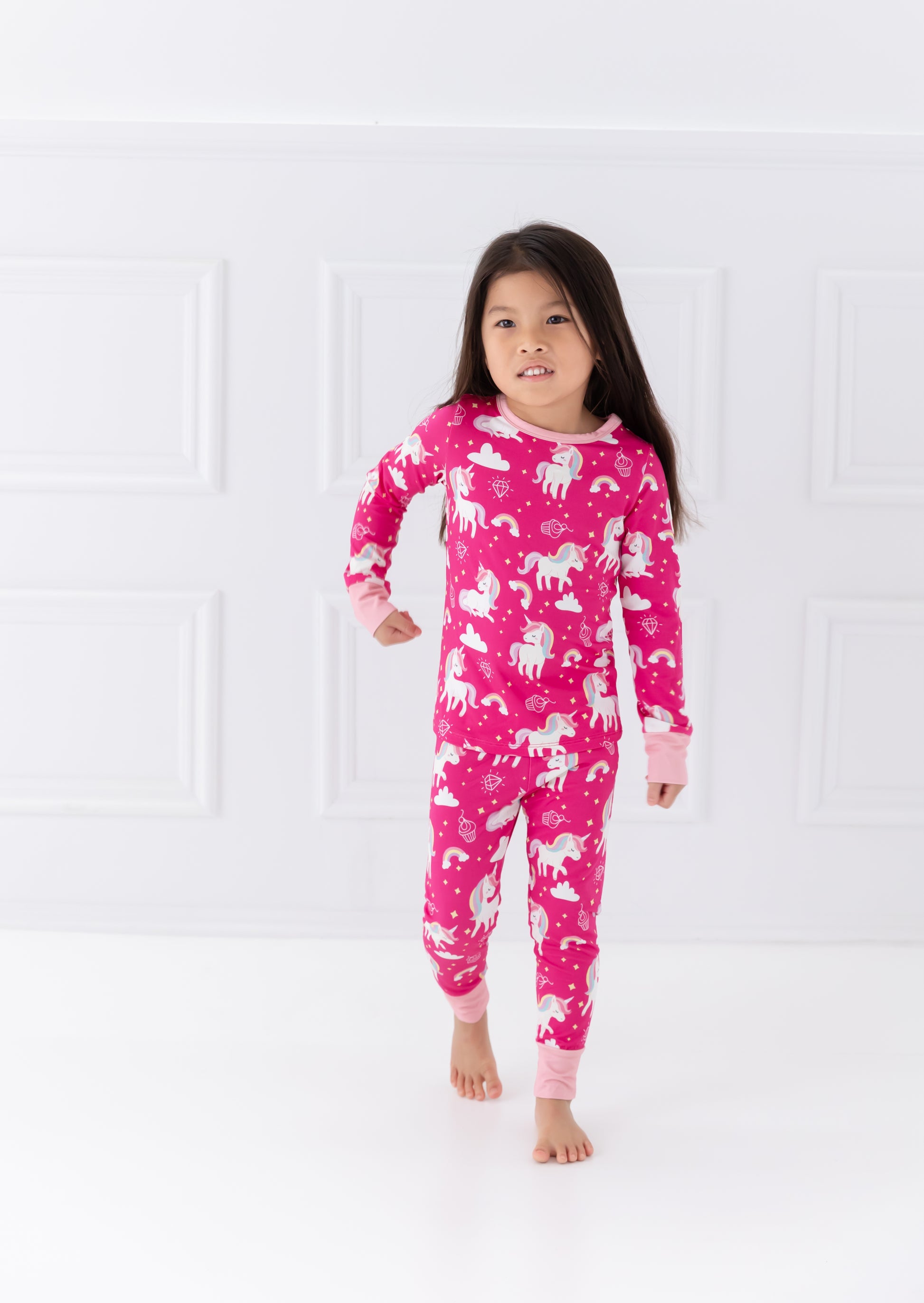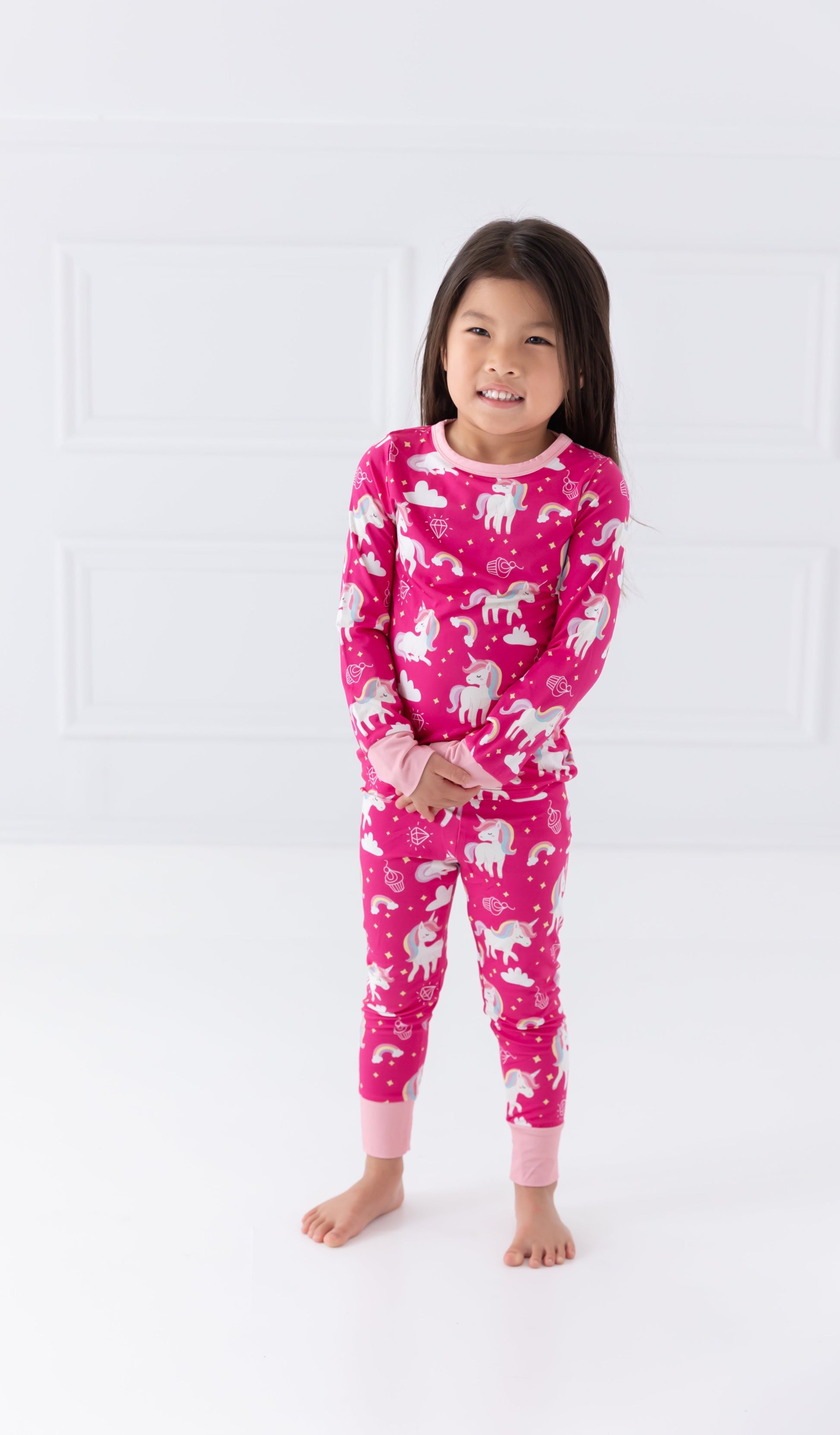 These Mythical Unicorns pajamas are out-of-this-world cozy! Not only do they feature a magical mix of rainbow hues and unicorn fluff, but they're also perfect for catching a wink of beauty sleep! Snuggle up and drift away on a mystical night of dreams!